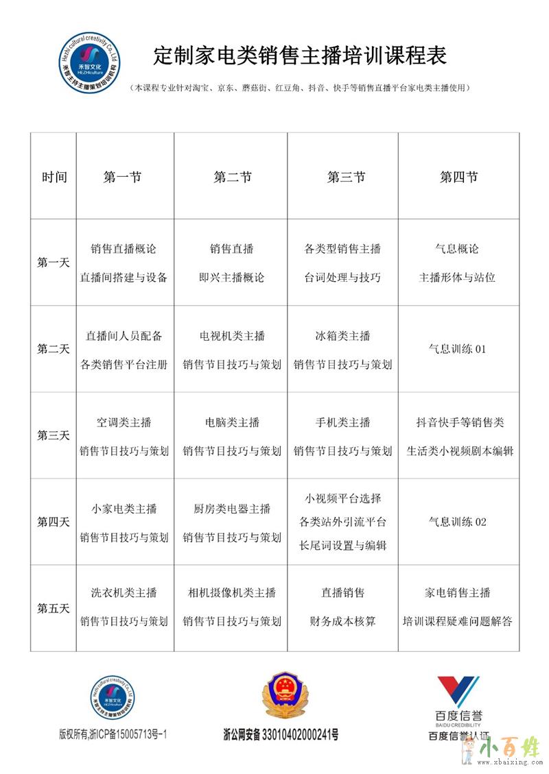 课程内容:气息发音,普通话调整,台词方法小百姓网www.xbaixing.com。销售节目策划(美食类,饰品类,